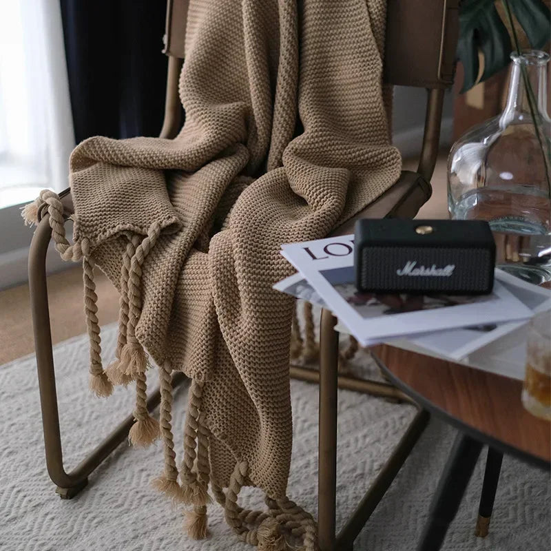 Nordic Knit Thick Tassel Throw Blanket