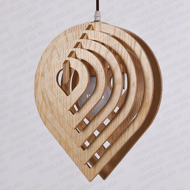 Nordic Wooden Tear Drop Pendant Hanging Chandelier Lamp