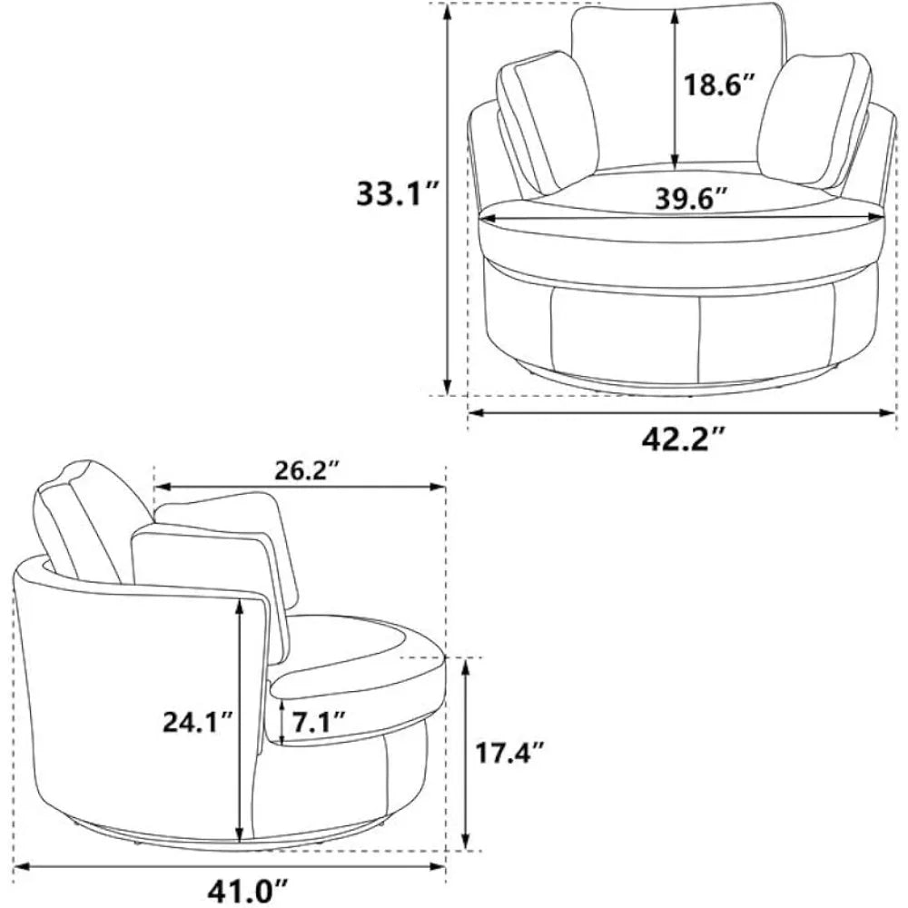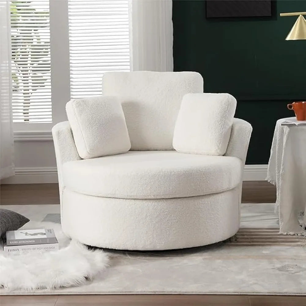 Transform your space with this luxurious oversized swivel barrel chair, the perfect statement piece for any room. Featuring a generously proportioned round design, it offers exceptional comfort for lounging, reading, or entertaining. The smooth 360-degree swivel function lets you rotate effortlessly to face any direction, while three included pillows add plush support and style. Upholstered in quality fabric, this versatile chair complements bedroom, living room, or hotel settings beautifully. Sink into sophisticated comfort and elevate your interior design with a chair that combines functionality with undeniable elegance.