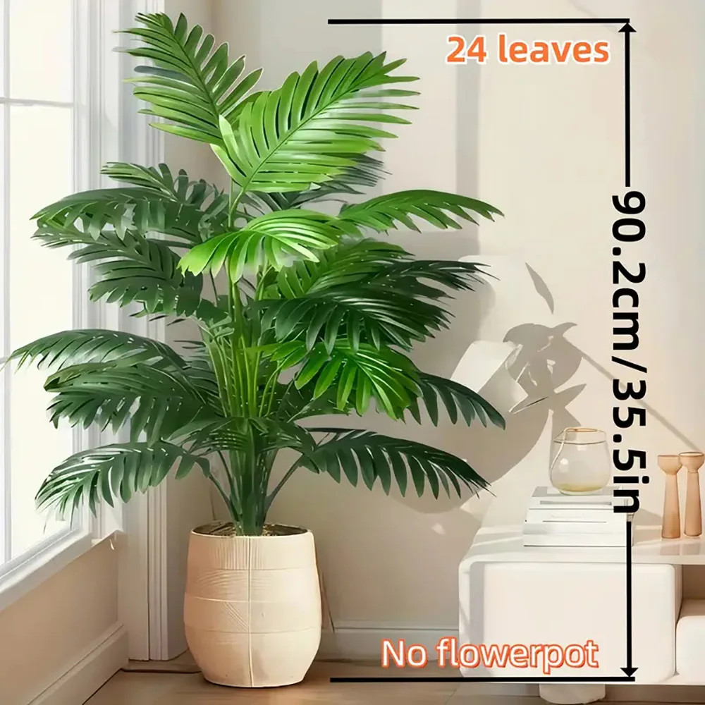 Transform your space with this stunning 35-inch artificial giant palm tree plant. Featuring two lifelike green leaves with authentic detailing, it brings tropical elegance to any room without the upkeep. Perfect for living rooms, patios, offices, or entryways, this maintenance-free beauty thrives indoors and outdoors year-round. No watering, no sunlight requirements—just instant, lasting greenery that stays vibrant through every season. Elevate your décor with effortless sophistication.