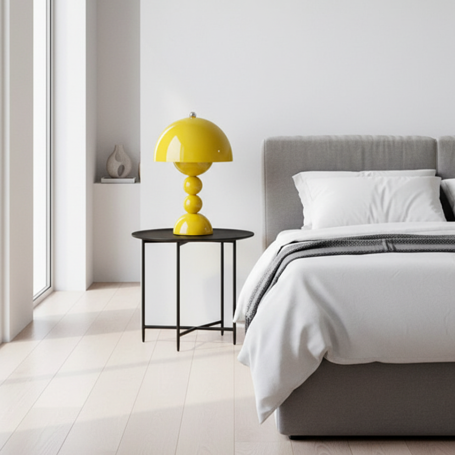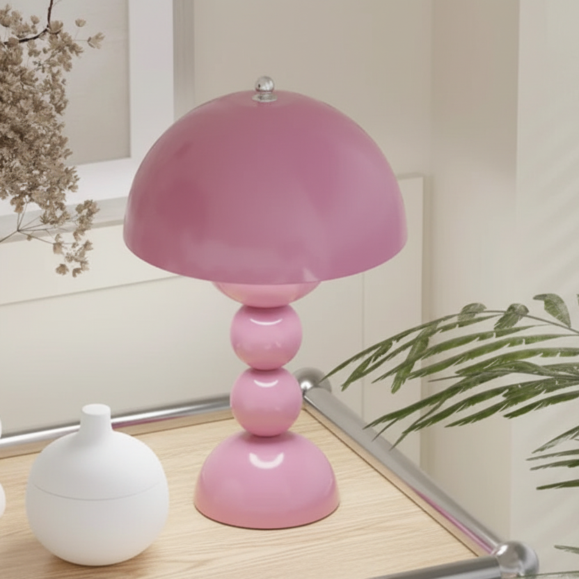 A whimsical accent piece that brings playful elegance to any room. This post-modern mushroom table lamp features a sculptural ABS body available in yellow, red, pink, or white, paired with a white frame for a contemporary look. Designed for versatility, it offers dimmable LED lighting with three color temperatures—switch between cool white, warm, and natural light to match your mood or décor. The compact 18 x 30 cm silhouette fits seamlessly on nightstands, desks, or shelves without overwhelming your space. Powered by USB with a 1-meter cord, it's easy to position anywhere you need ambient light. Touch-activated controls make adjusting brightness and color effortless. Includes LED bulbs and batteries—ready to use right out of the box. A statement piece that combines form and function for modern interiors that don't take themselves too seriously.