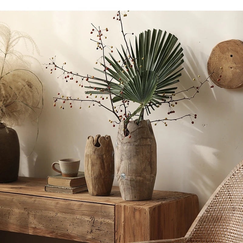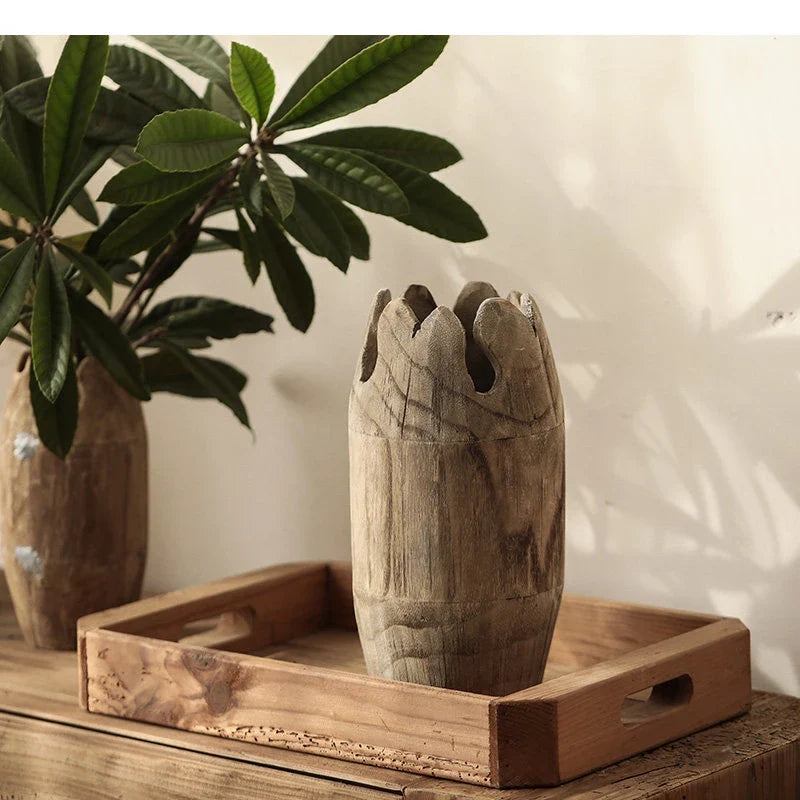 Raw Carved Paulownia Wood Irregular Edge Vase