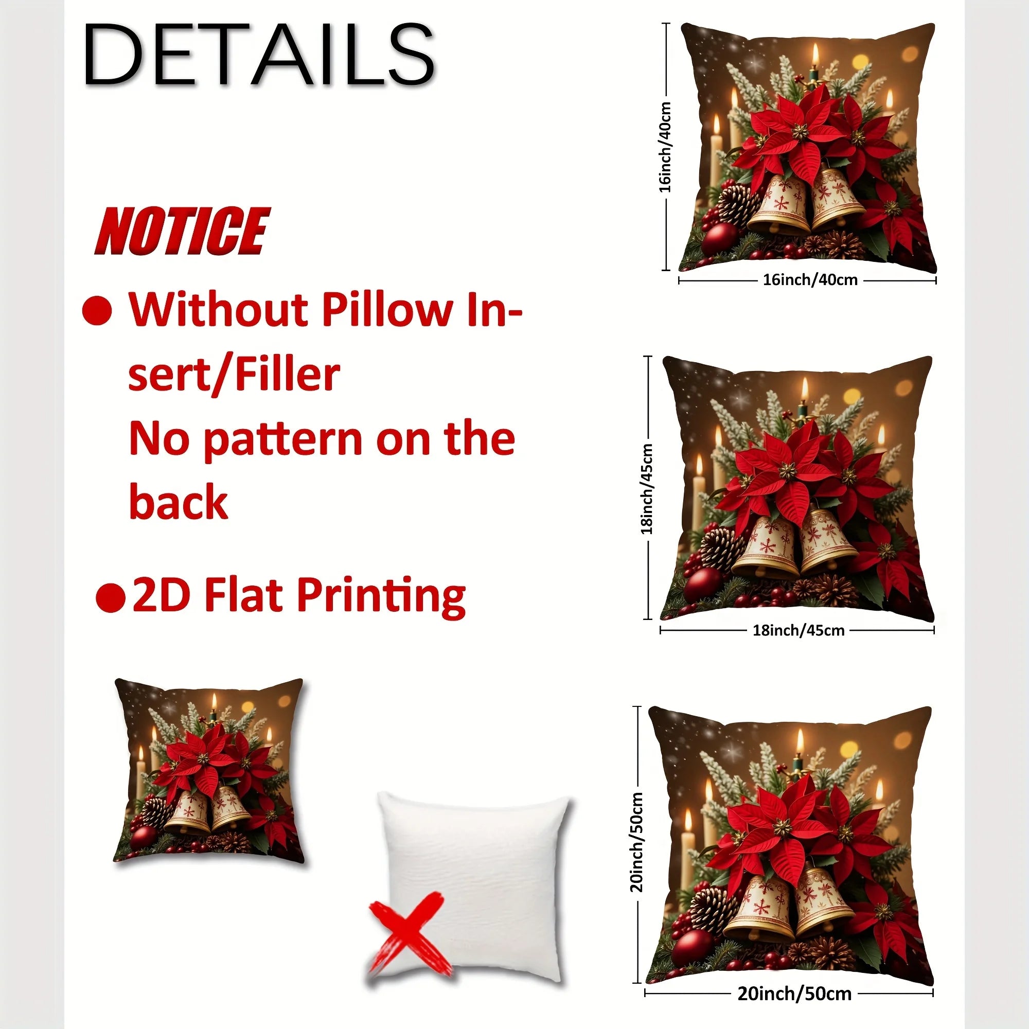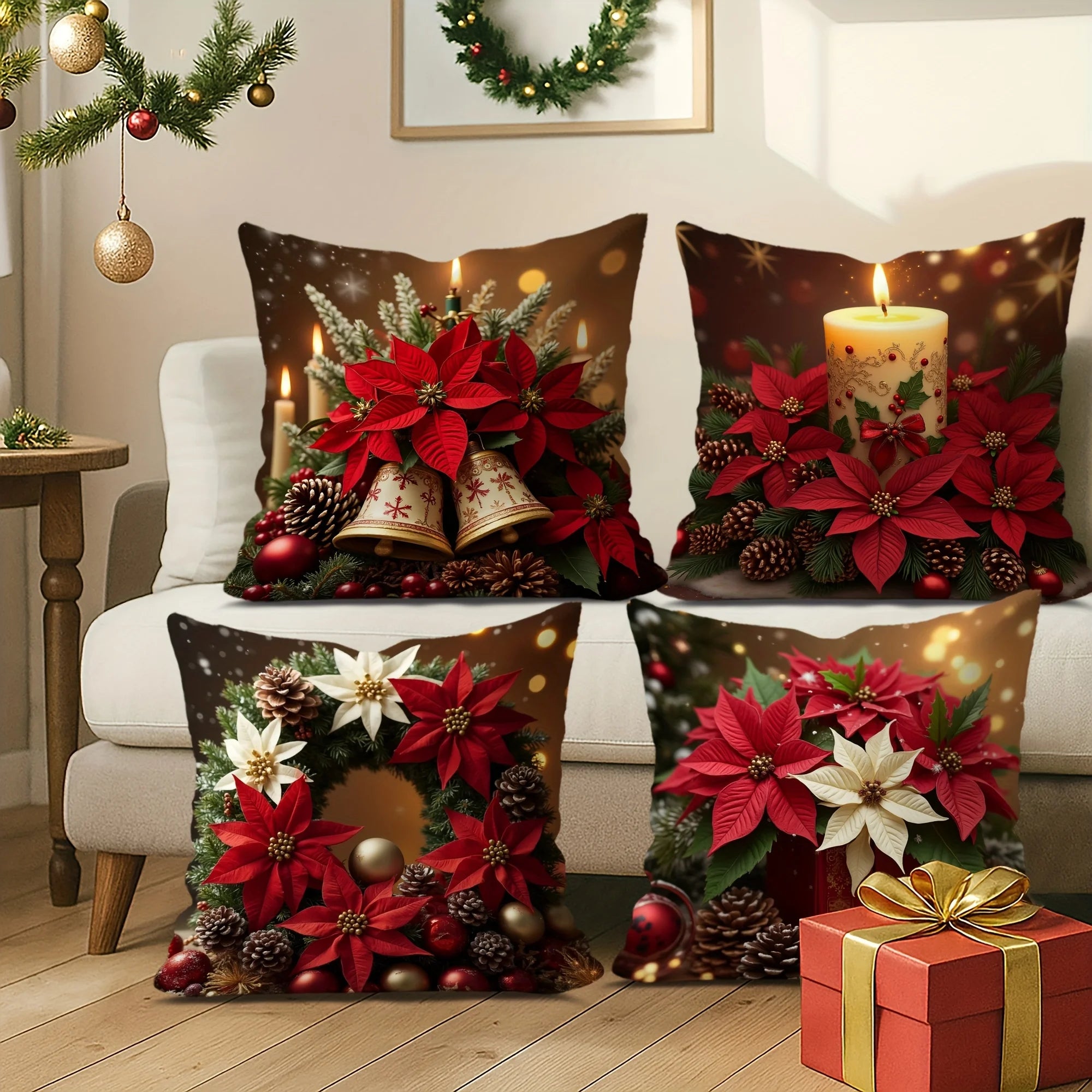 Bring holiday warmth to any room with this 4-piece set of red and white poinsettia pillow covers. Made from soft, durable plush fabric with vibrant digital printing, these vintage-style covers instantly add festive elegance to your sofa, chairs, or bedroom.