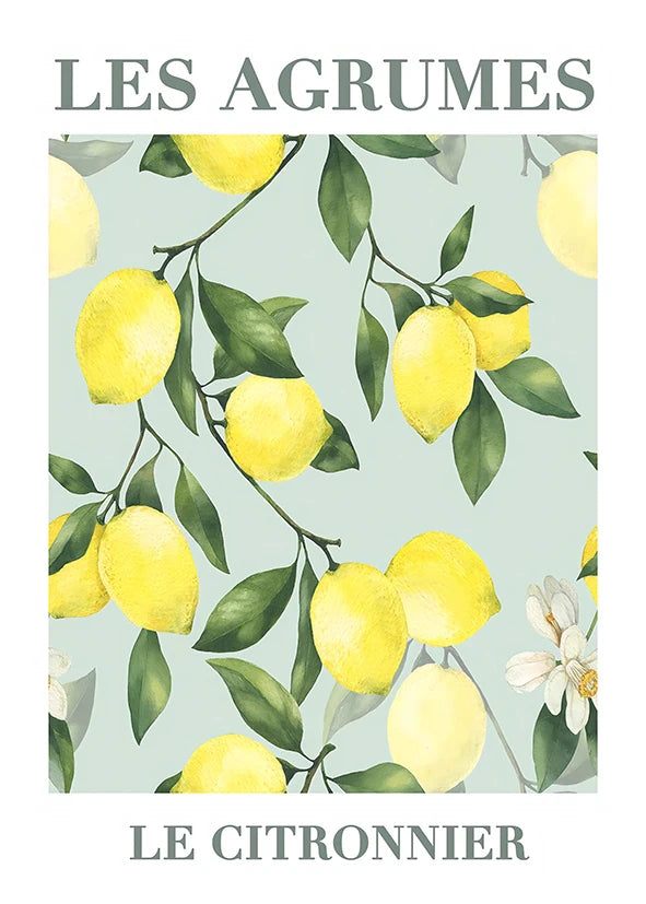 Retro Lemon Garden Canvas Poster Wall Art Print