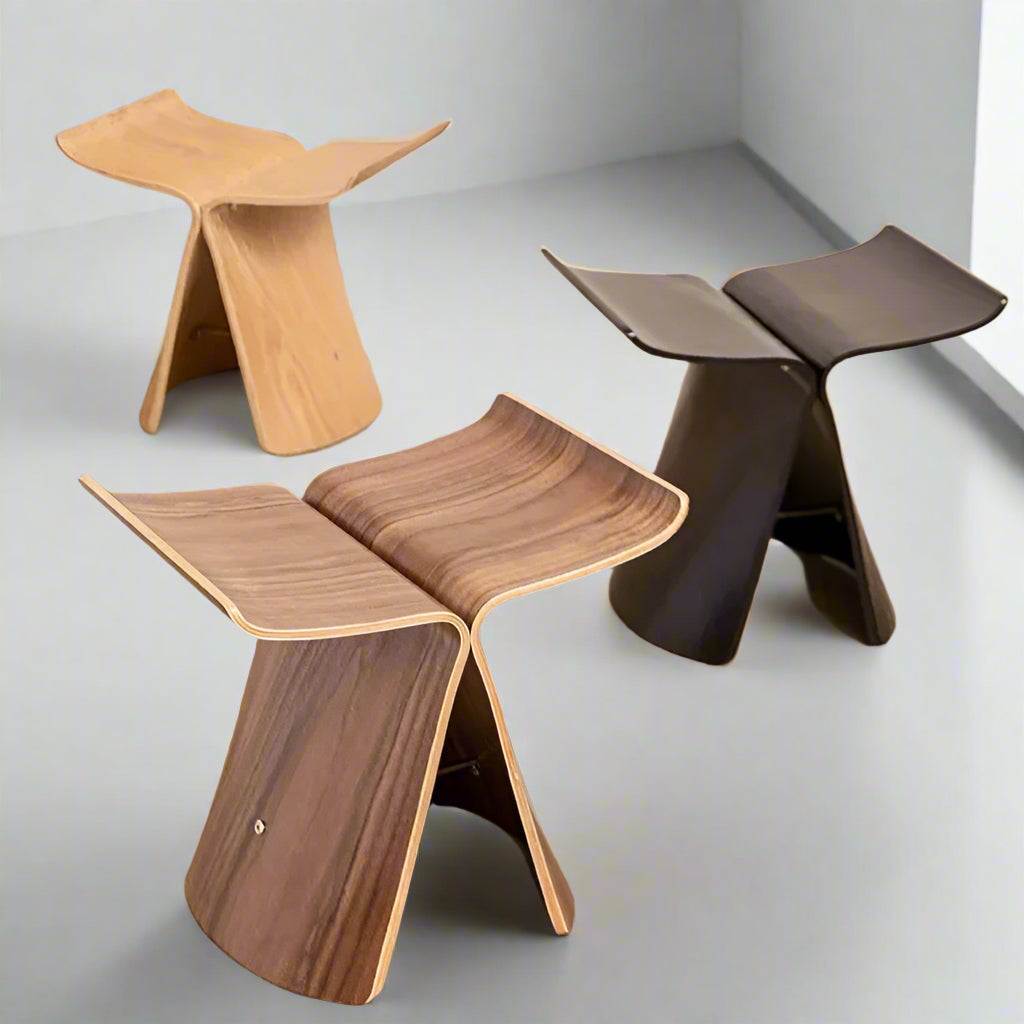 Scandi Wooden Butterfly Curved Accent Table Stool