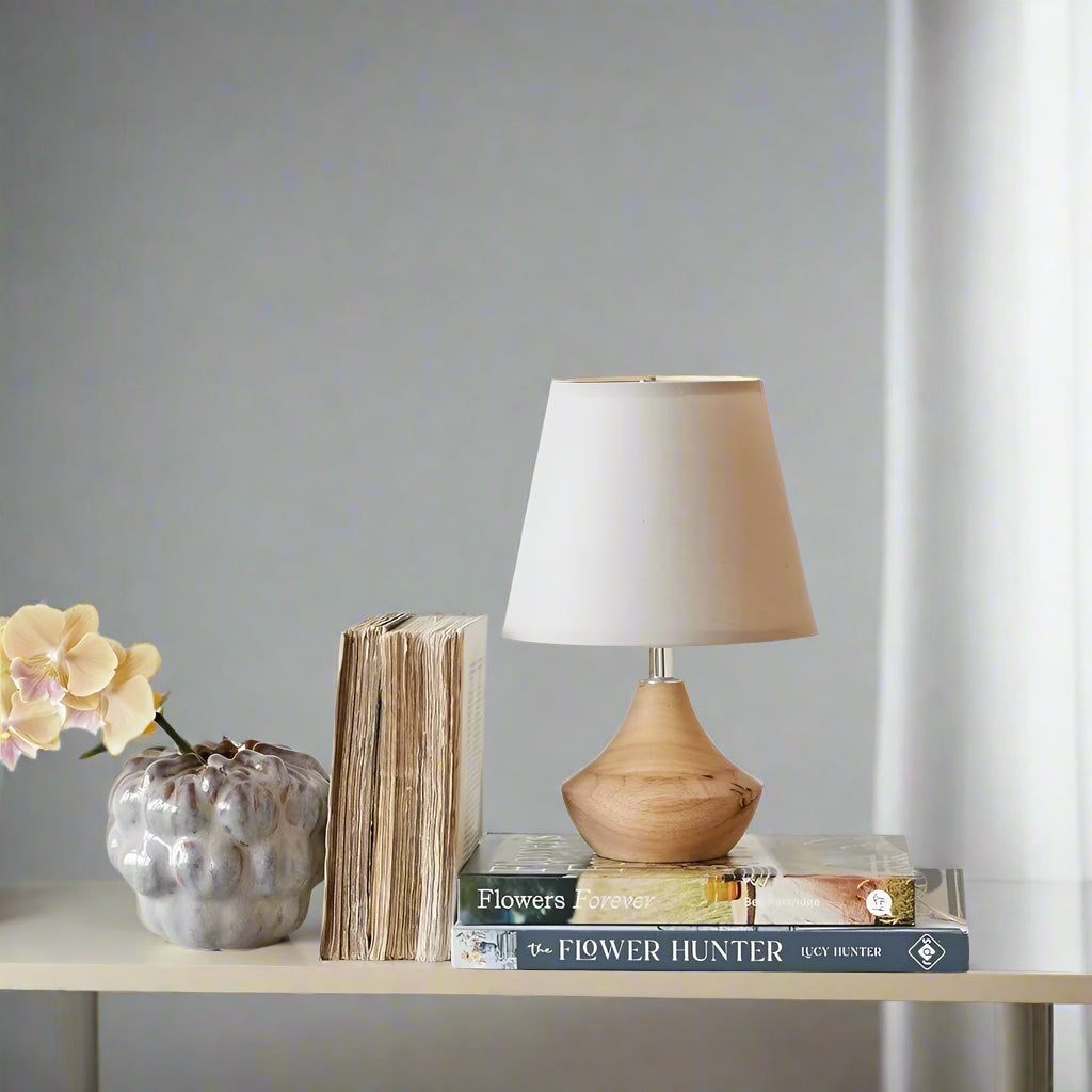 Small Eucalyptus Wood & Linen Shade Table Lamp