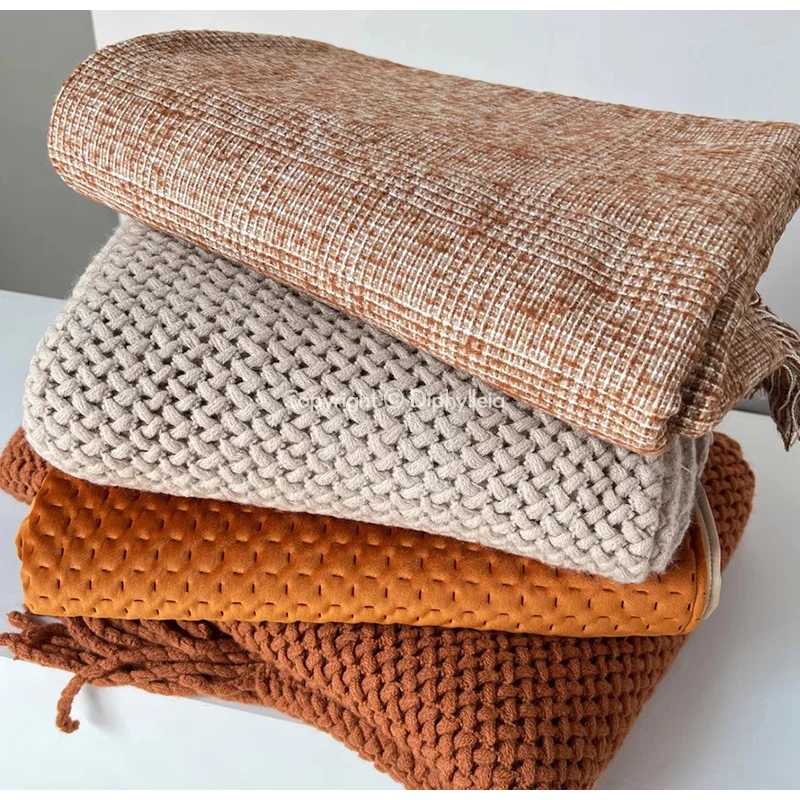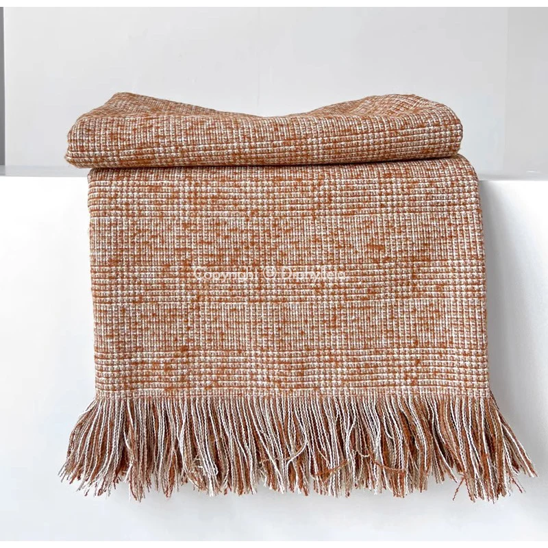 Soft Rust Orange Woven Throw Blanket with Tassels