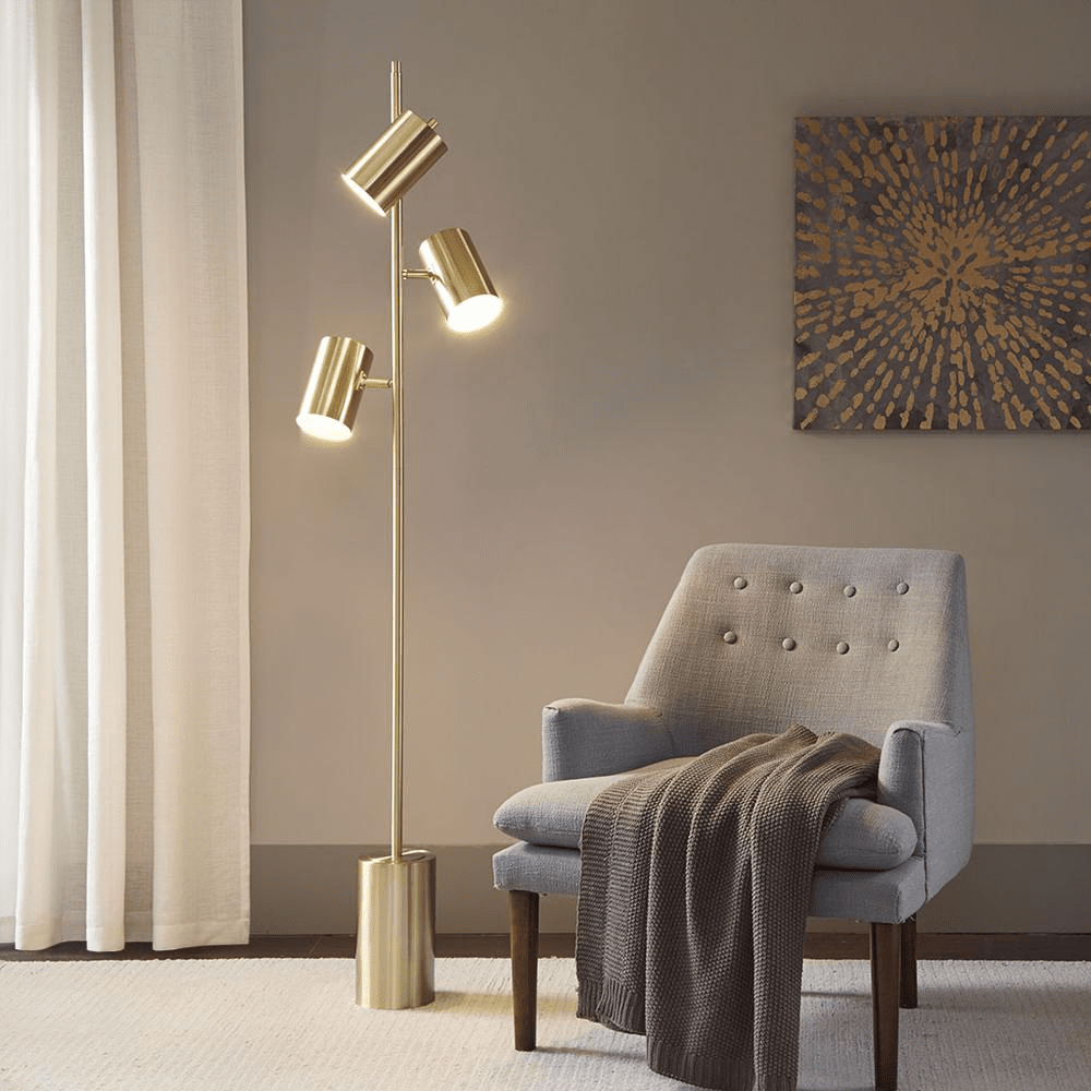 Enhance your space with the Urban Habitat Alta 3-Light Metal Floor Lamp! This gorgeous metal pendant, coated in gold, will bring a stylish and unique element to any room. Infuse your home with a mesmerizing charm using this floor lamp. Please note: three Type A lightbulbs (not included) are needed, and it comes with a 2-year guarantee. Crafted from 100% iron in China.