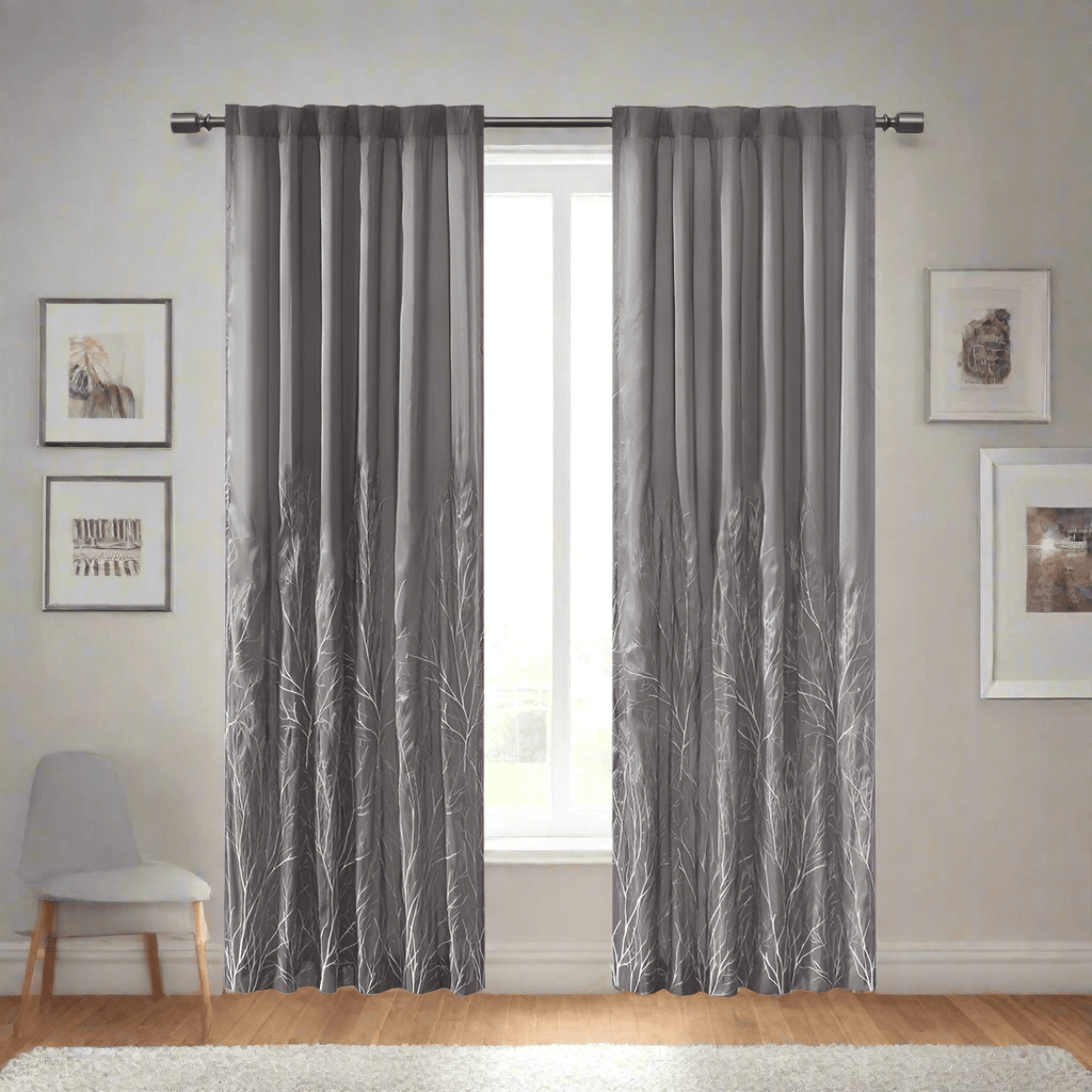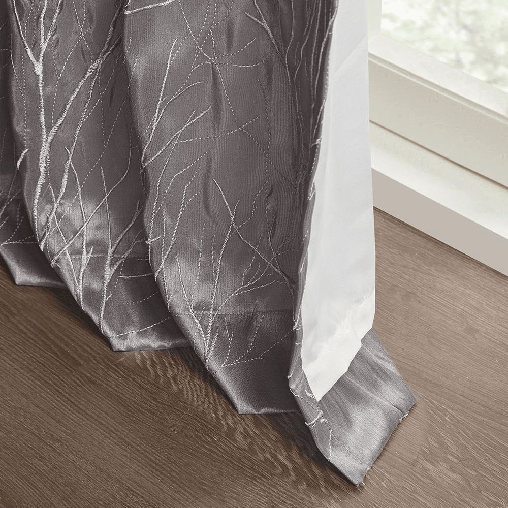 Tree Branch Embroidered Silky Lined Window Curtain Panel