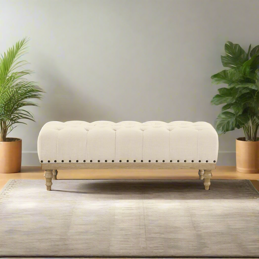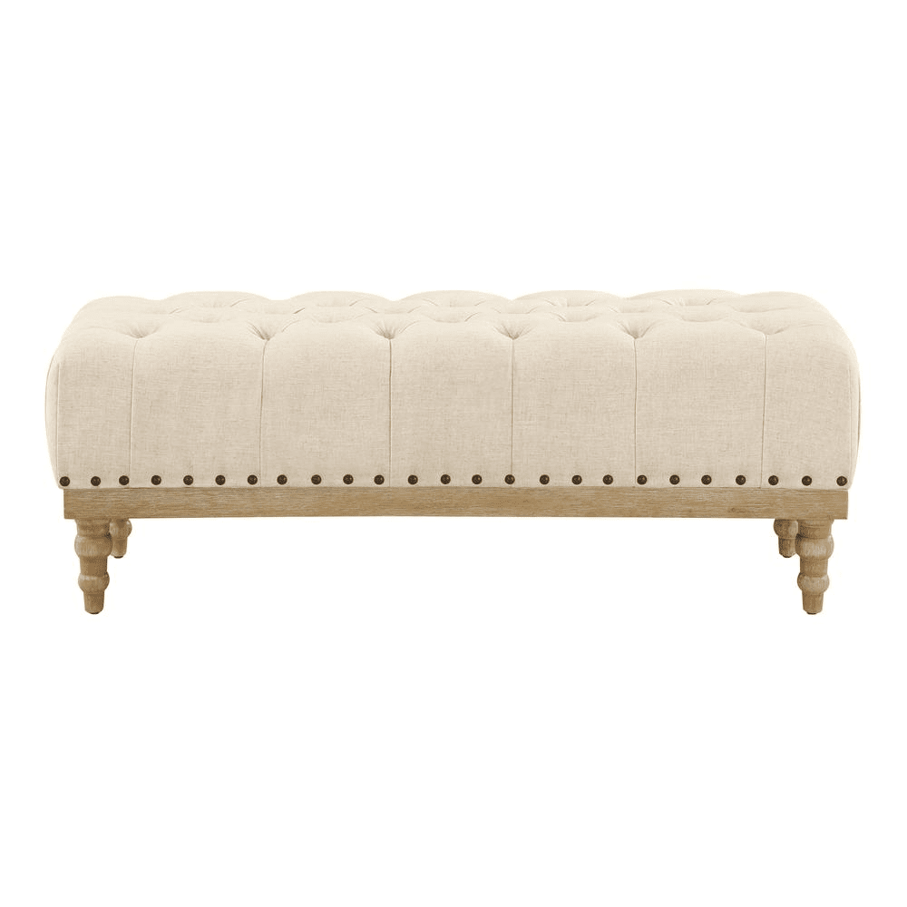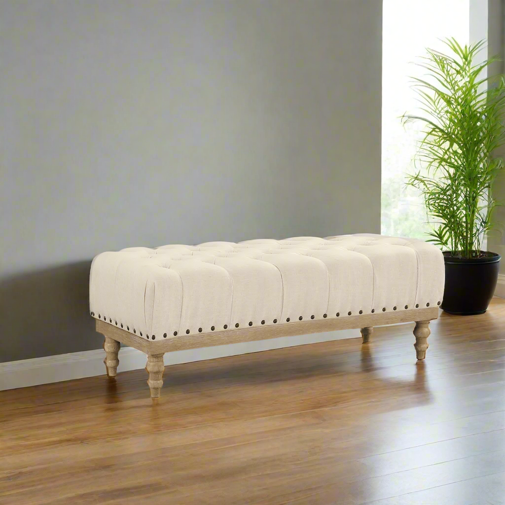 Tufted Fabric Upholstered Ecru Ottoman Bench