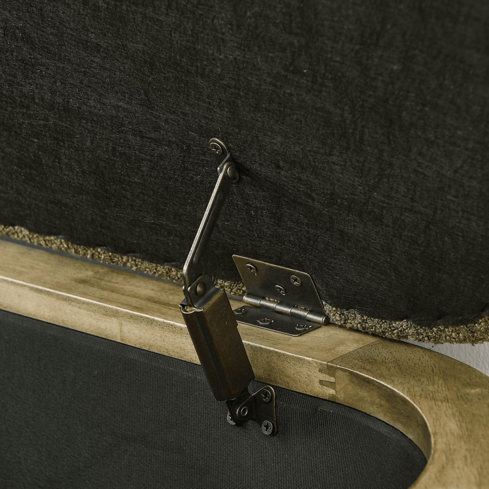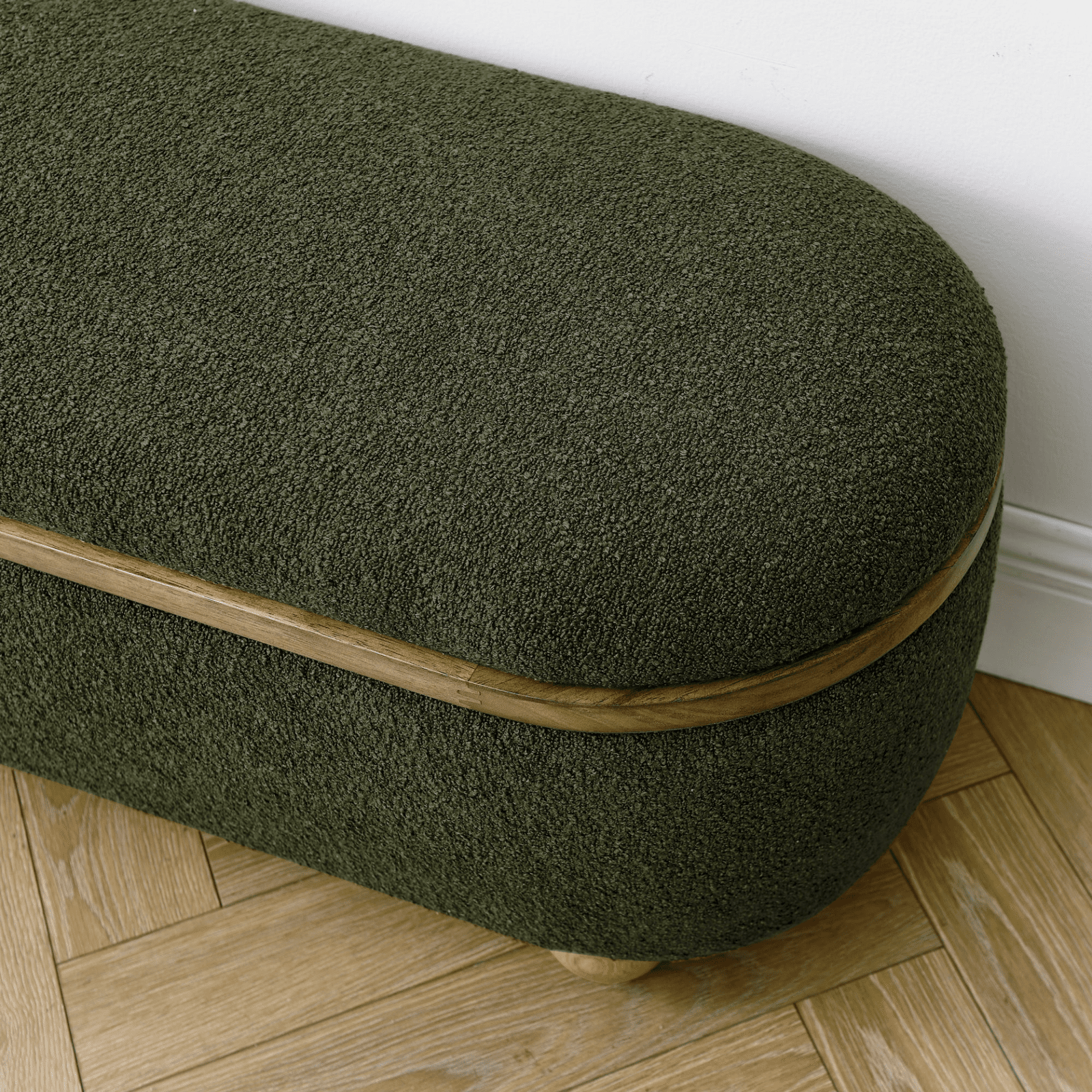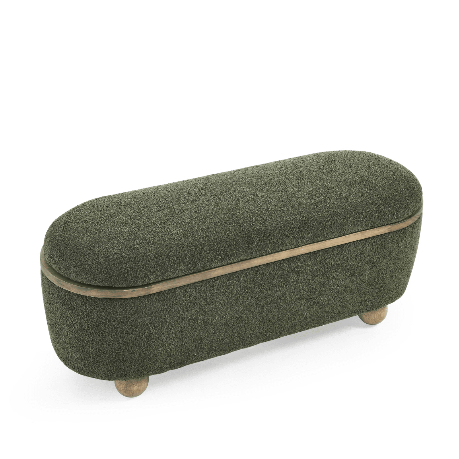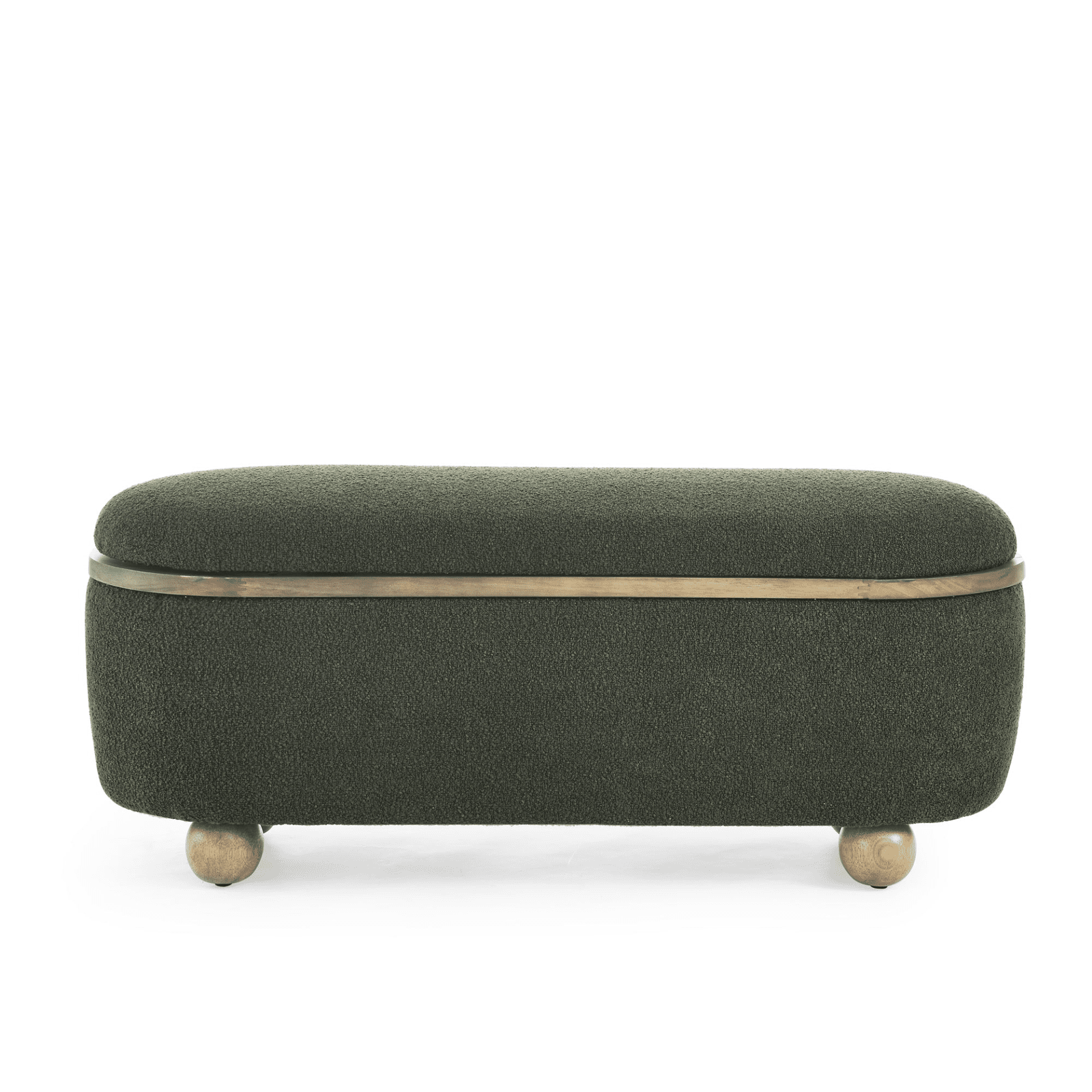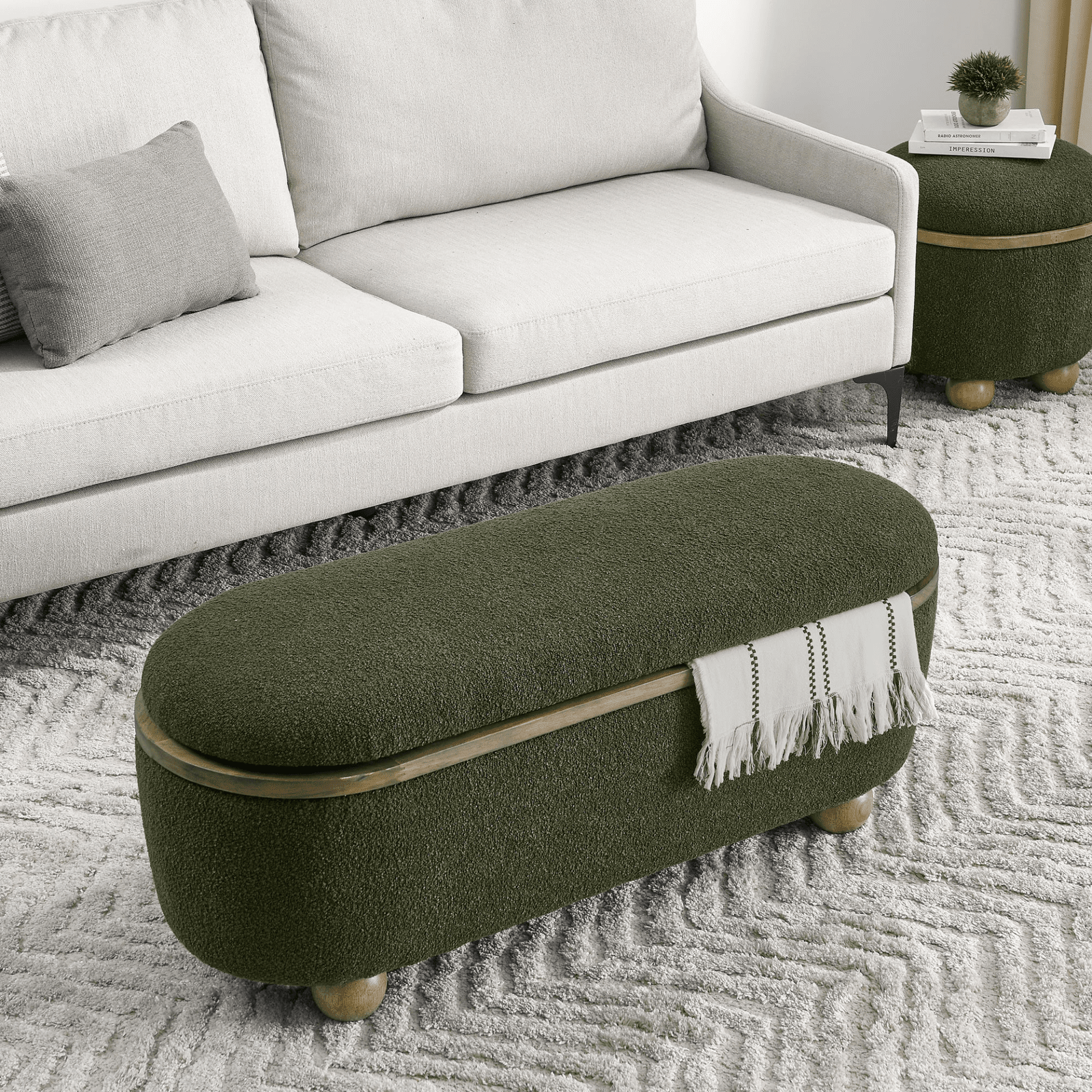 This hunter green storage ottoman bench offers generous storage for blankets, pillows, toys, and more. Ideal as an entryway bench, a stylish living room storage ottoman or a stylish piece at the foot of a bed, it effectively conceals clutter while adding style to your space. Featuring stain-resistant loop yarn upholstery and high-quality foam padding, it delivers lasting comfort. Built with sturdy solid wood legs and soft fabric, it blends durability with sophistication. Assembly is quick and straightforward with four legs to attach, making this ottoman a stylish and practical addition to any room.