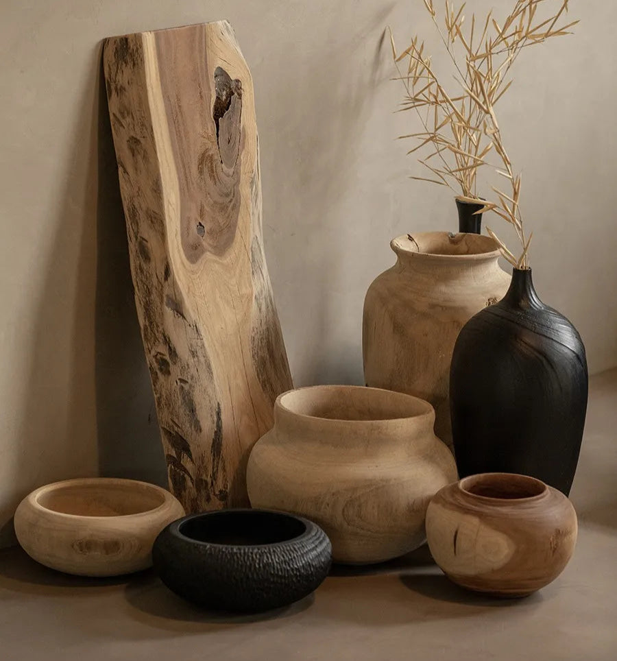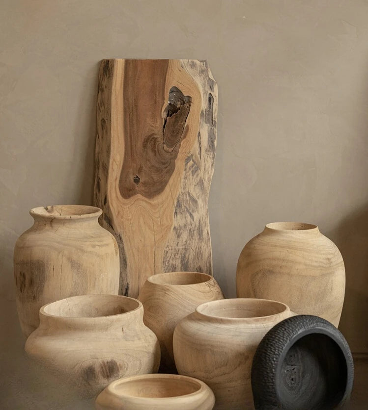 Wabi-sabi Seamless Solid Camphor Wood Large Vase