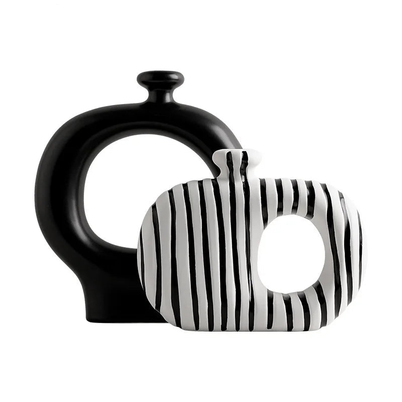 Zebra Stripes Pattern Ceramic Abstract Vase Set