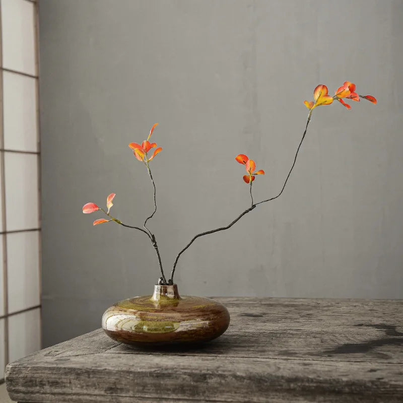 Zen Ceramic Vase Flat Mouth Japandi Pot Vase
